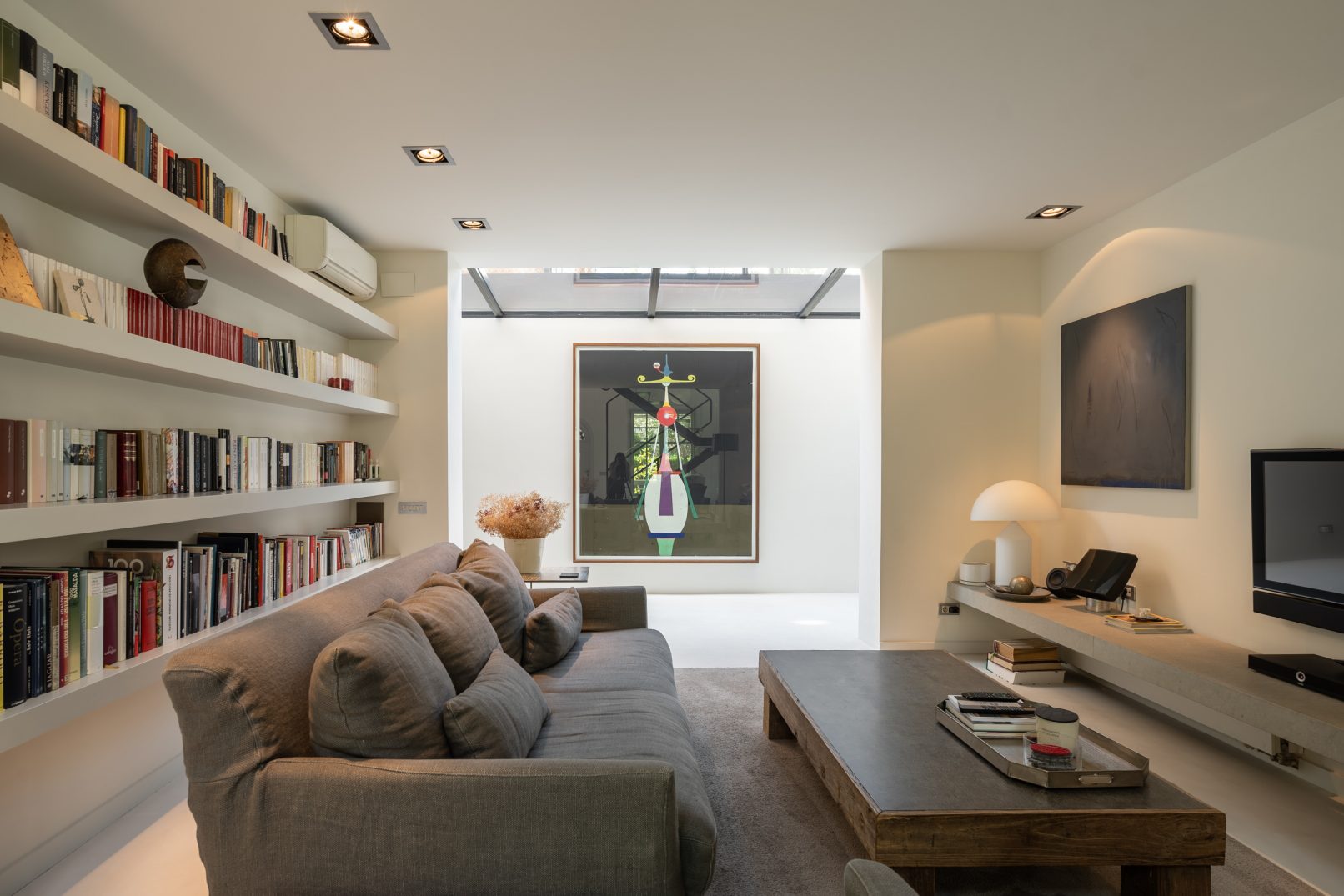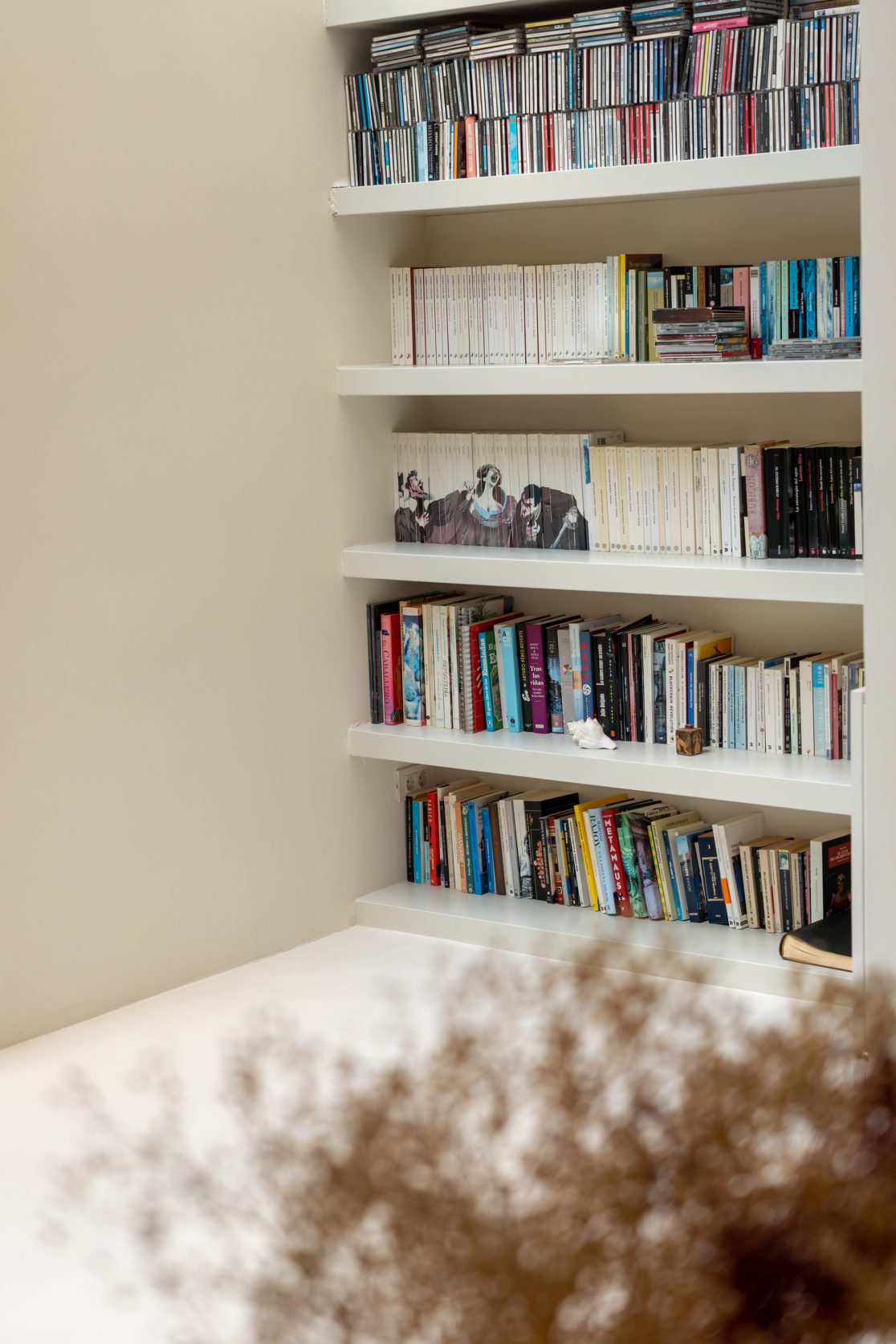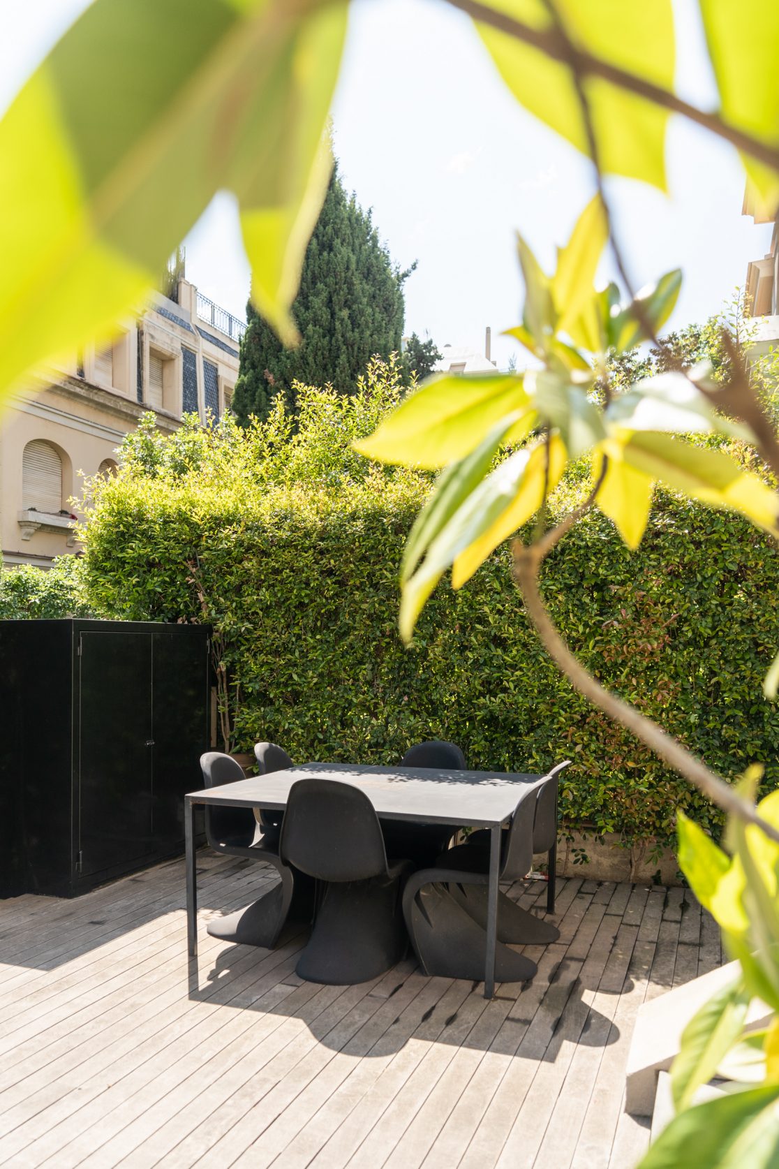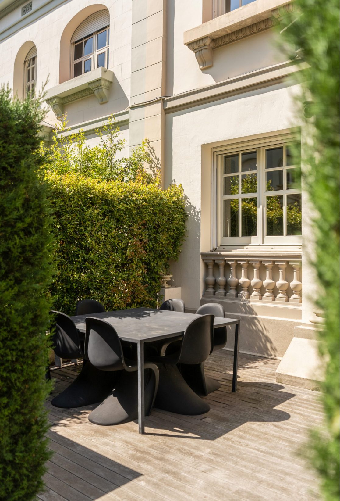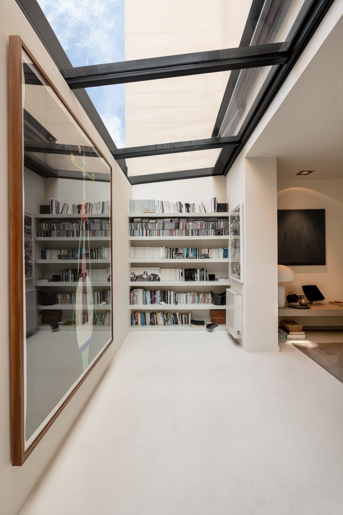Reportaje de una espectacular casa de diseño en Barcelona, para la agencia Somos. Destaca por los contrastes entre blanco y negro, con paredes y suelos claros contrapuestos a la negra escalera, el eje central de la propuesta arquitectónica. La luz que entra por los grandes ventanales, los materiales elegidos y los toques de color de las obras de arte, le dan calidez a este espacio de transición entre estancias. Fotos de interiorismo, arquitectura y detalles lifestyle.