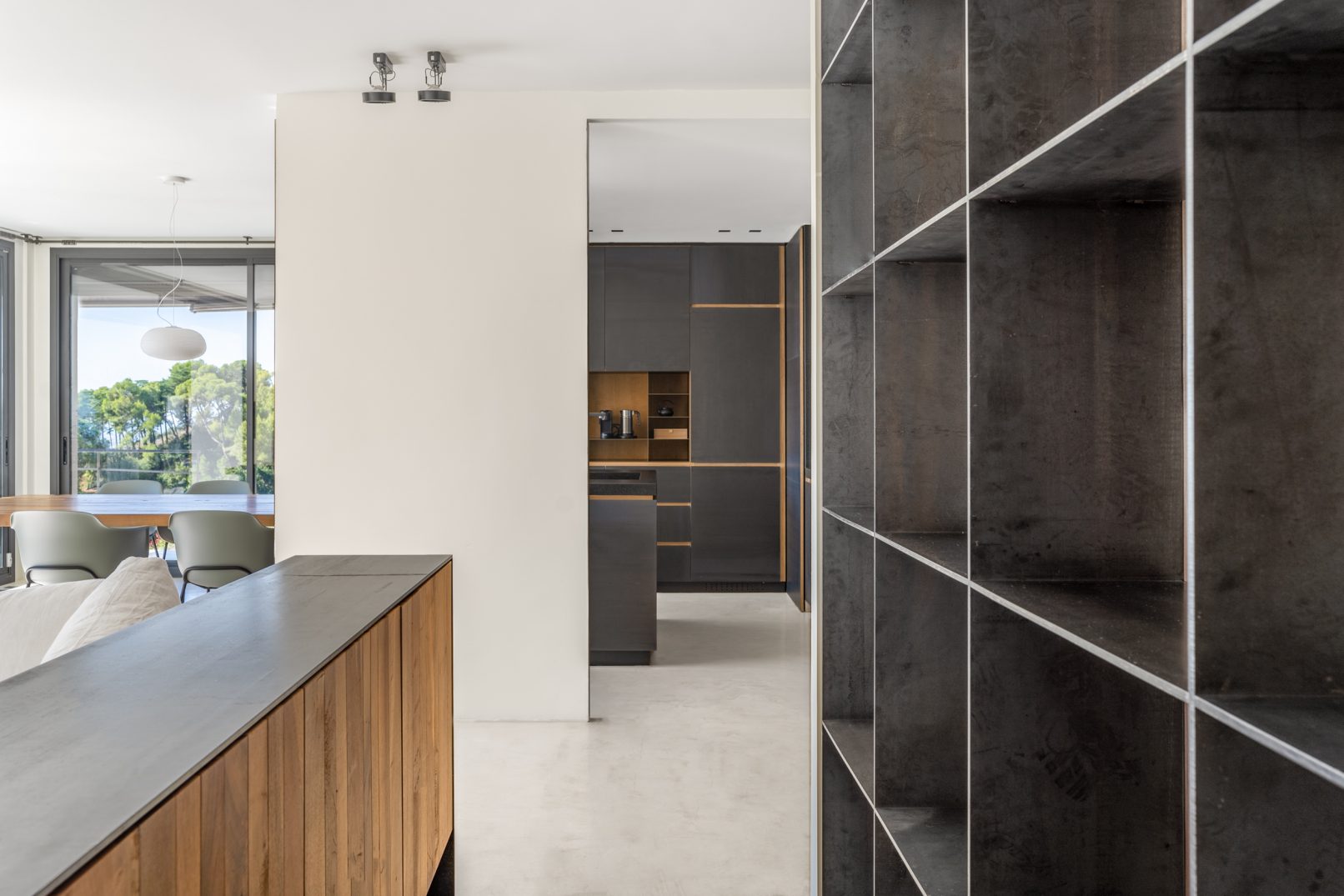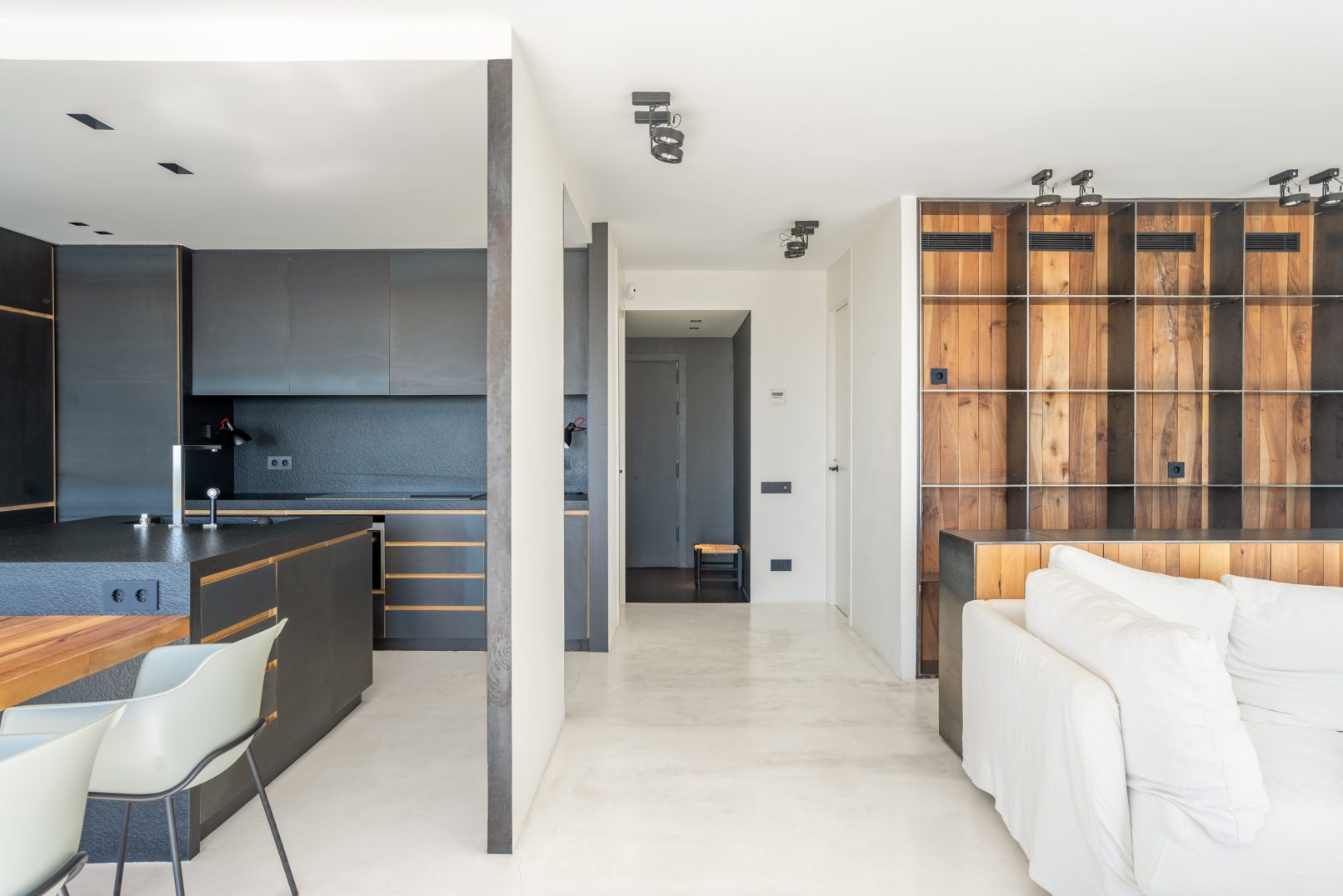 Reportaje de un espectacular dúplex de diseño ubicado en la montaña de Collserola. Cuidado proyecto arquitectónico que combina grandes volúmenes y materiales industriales, todo en blanco y negro y detalles en madera. Con las fotos buscamos destacar las geometrías y encuadrar estéticamente los espacios.