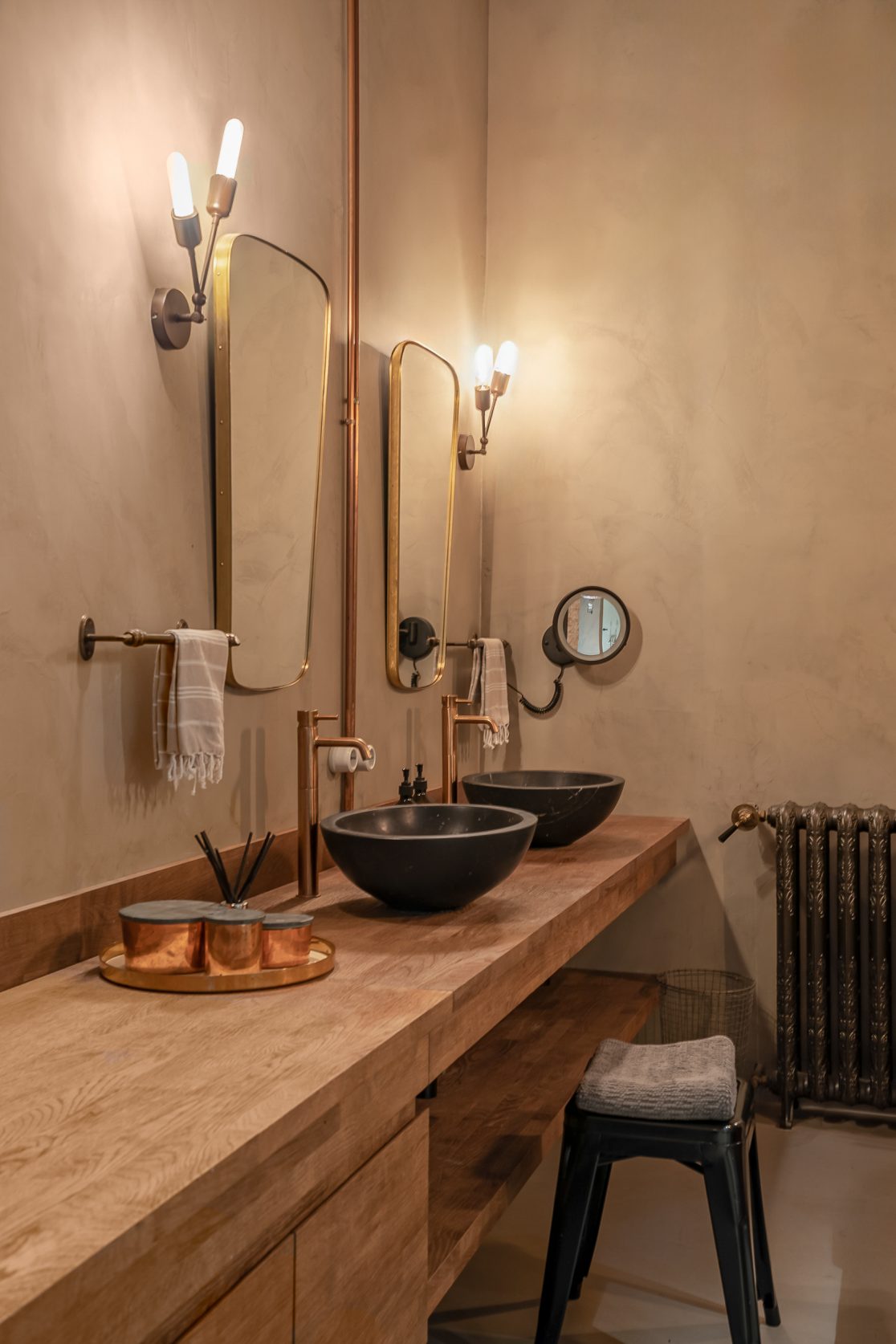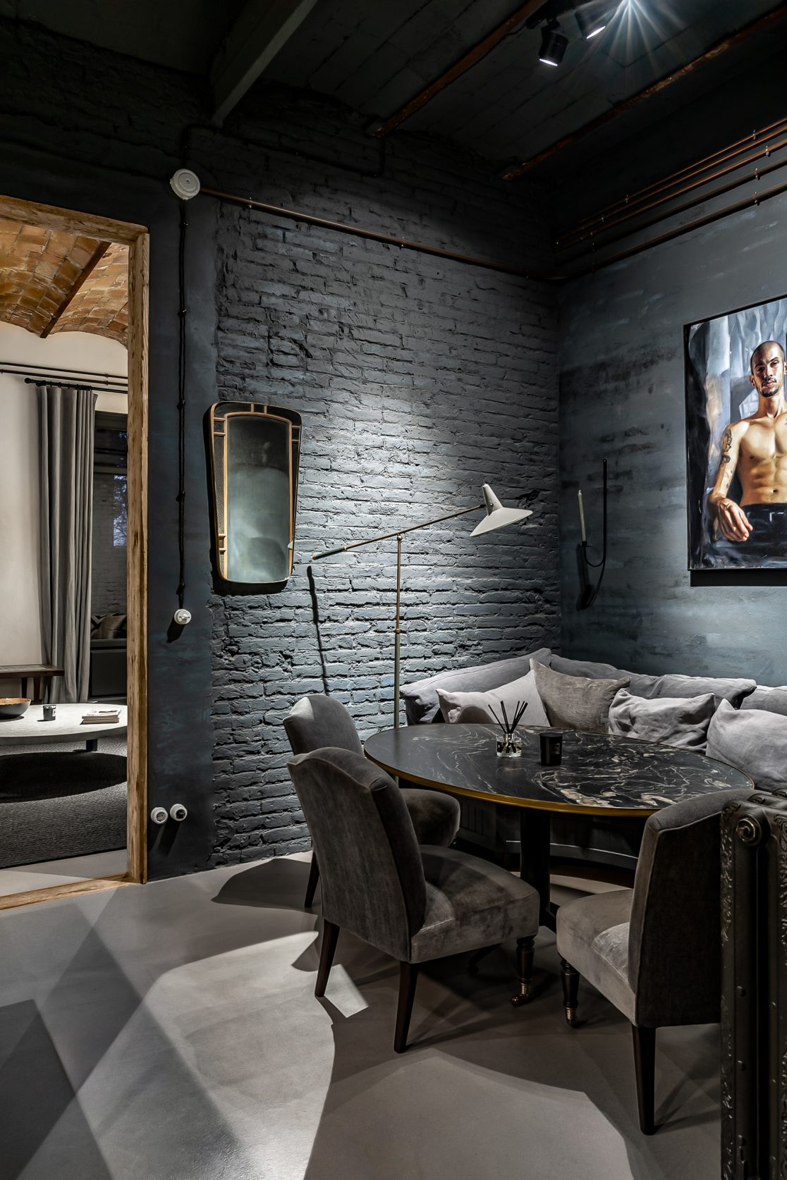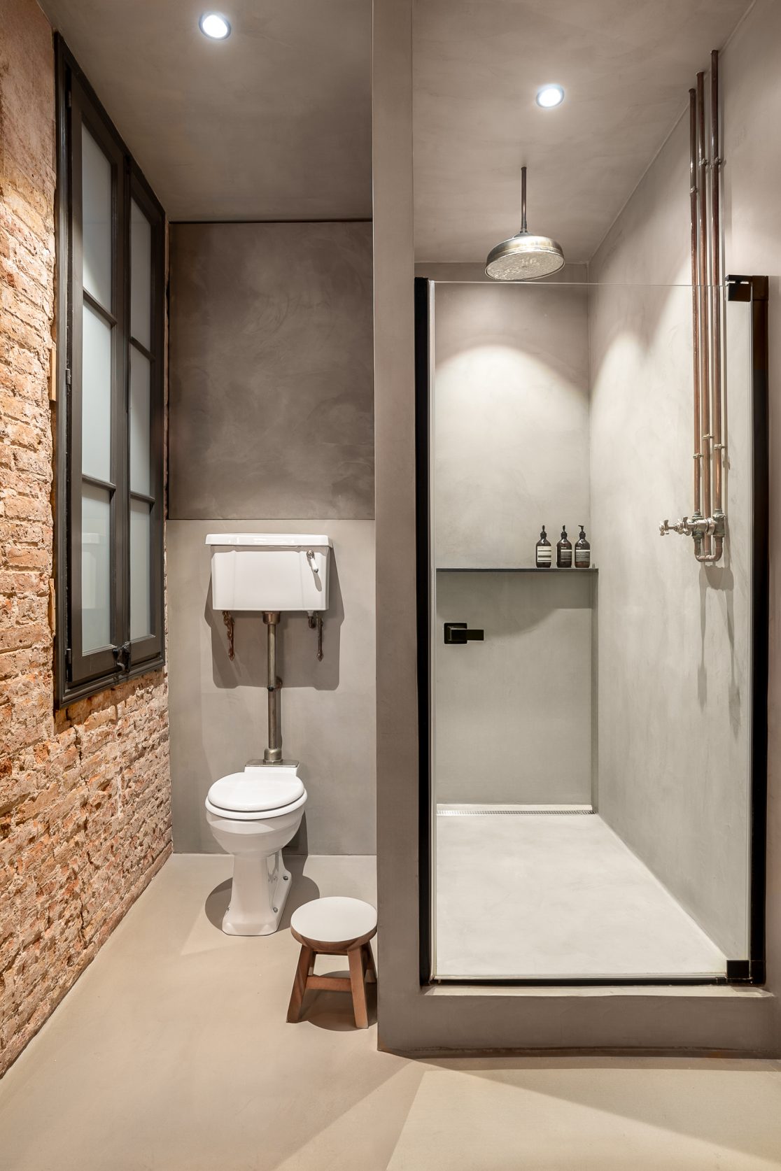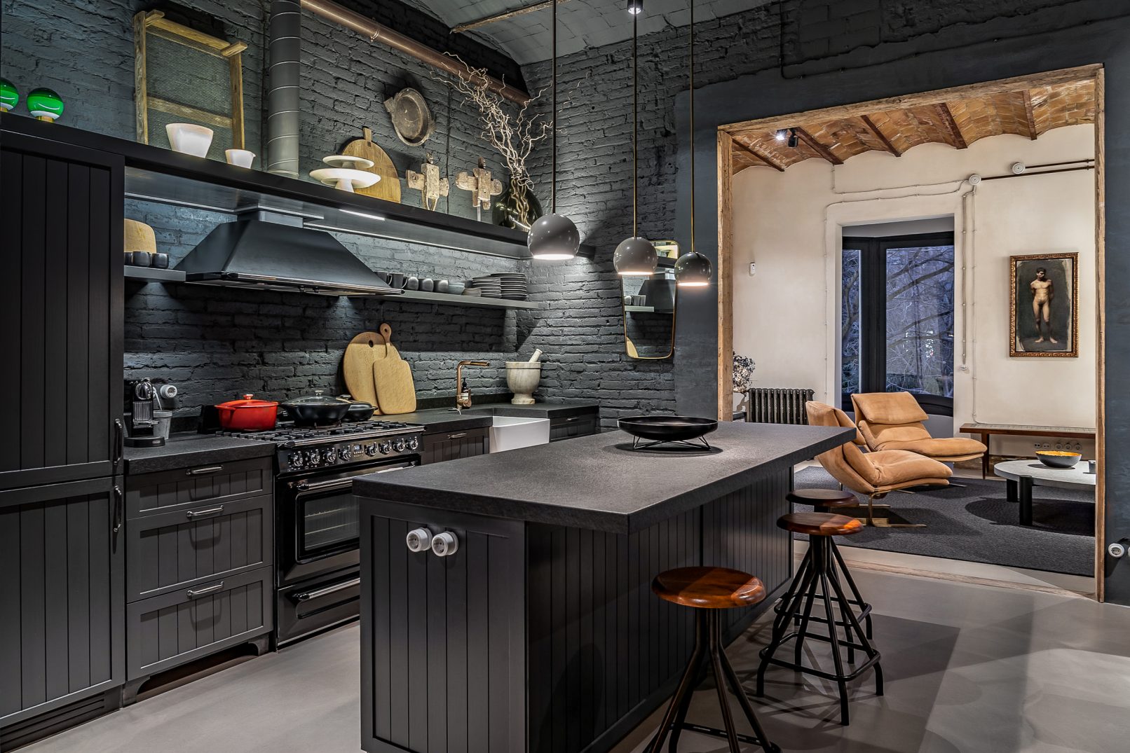Este proyecto combina carácter industrial y elegancia contemporánea, conservando elementos históricos como la bóveda catalana, el ladrillo visto y canaletas de cobre.