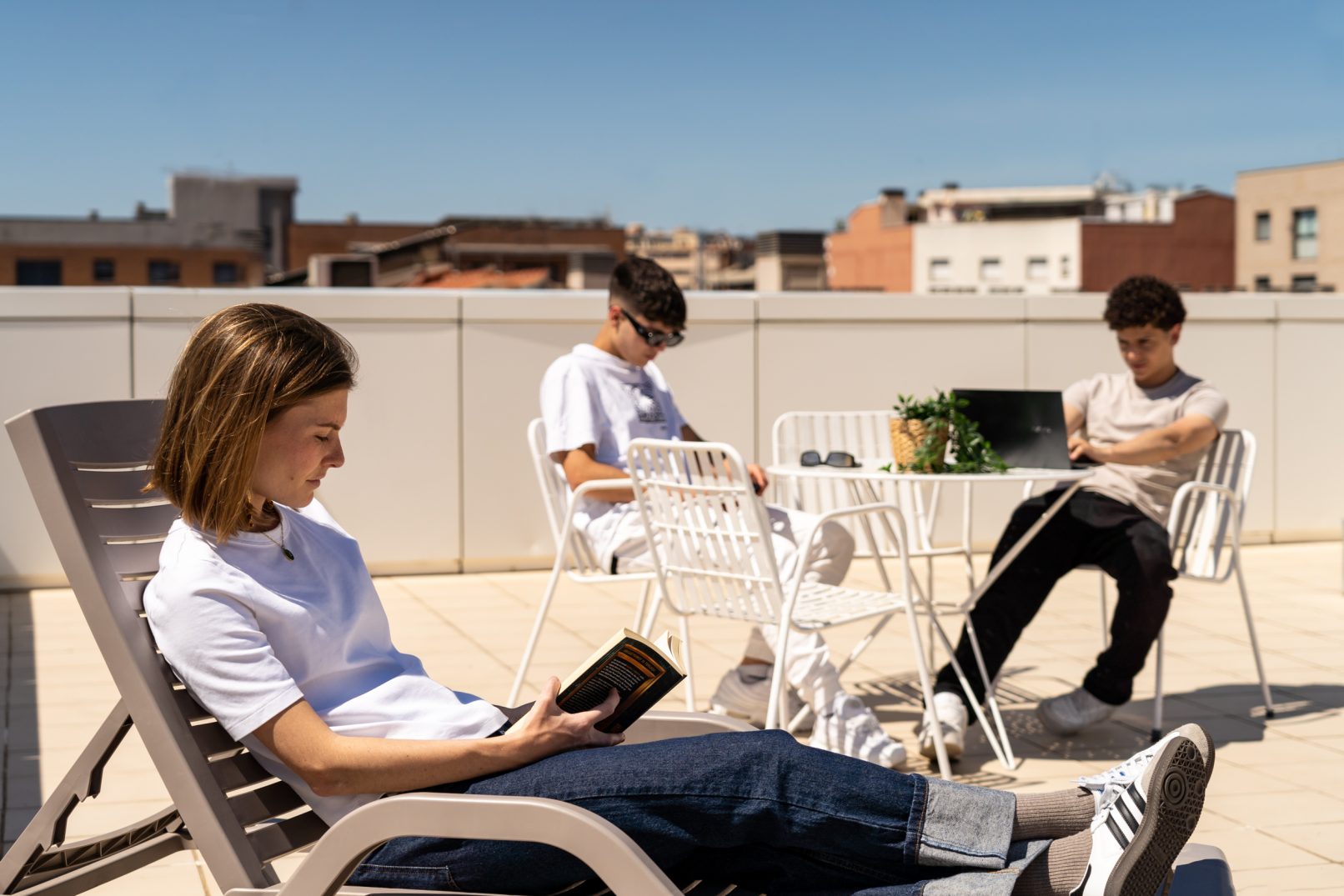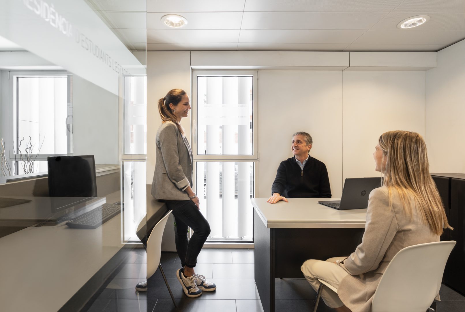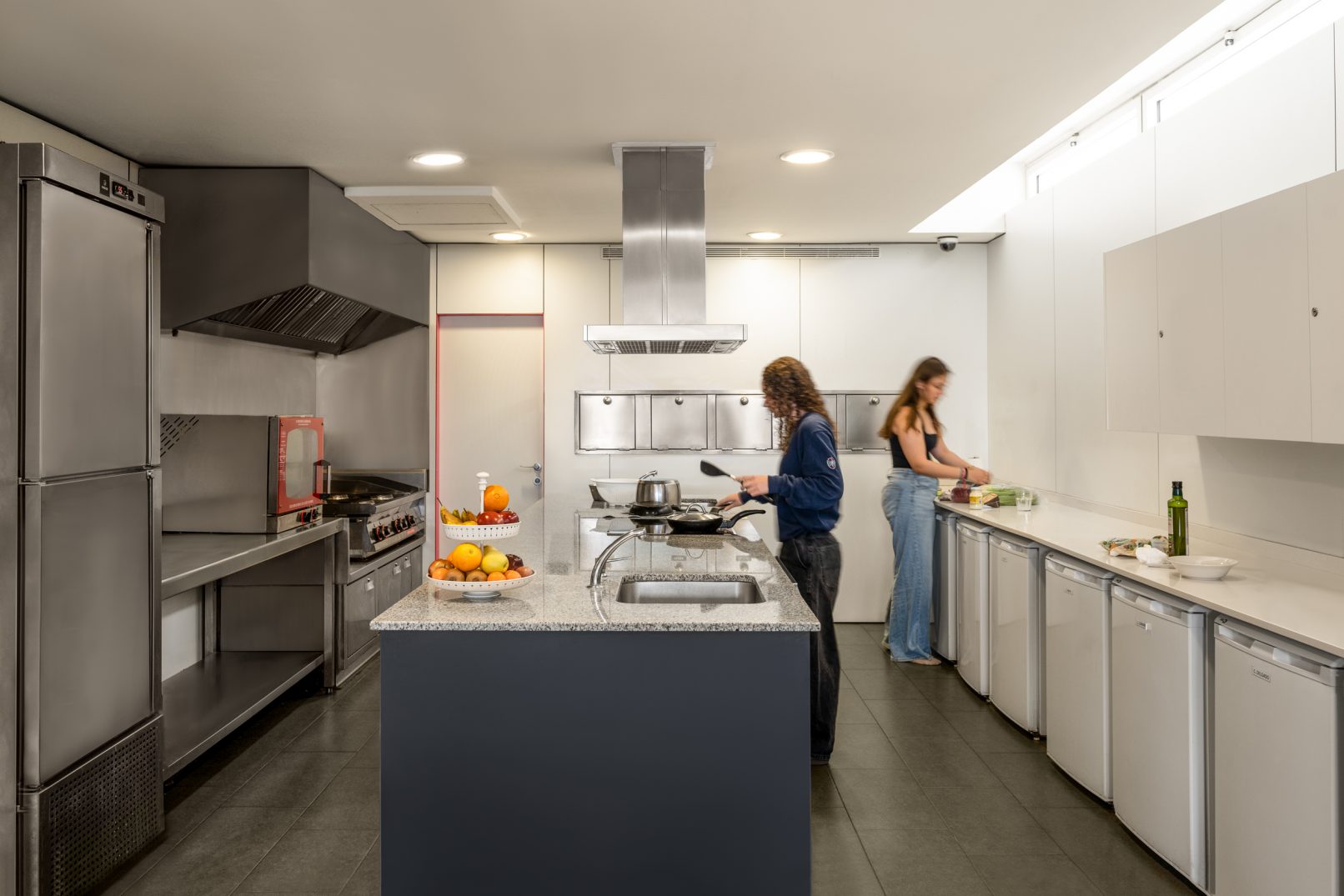 Además de la arquitectura y el interiorismo, también capturamos escenas de «acting» con figurantes, lo que añade un toque de dinamismo y realismo al reportaje. Las imágenes reflejan la vida cotidiana de los estudiantes, creando una narrativa visual que conecta el espacio físico con las experiencias de quienes lo habitan.